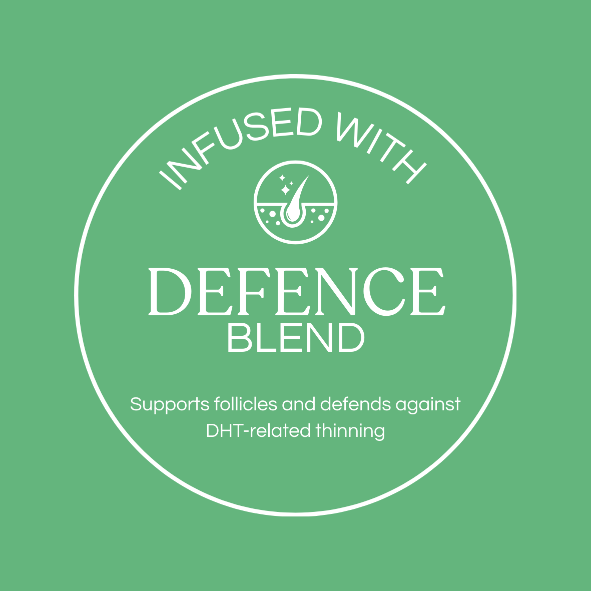 - Defence ~ Supports follicles and defends against DHT-related thinning.